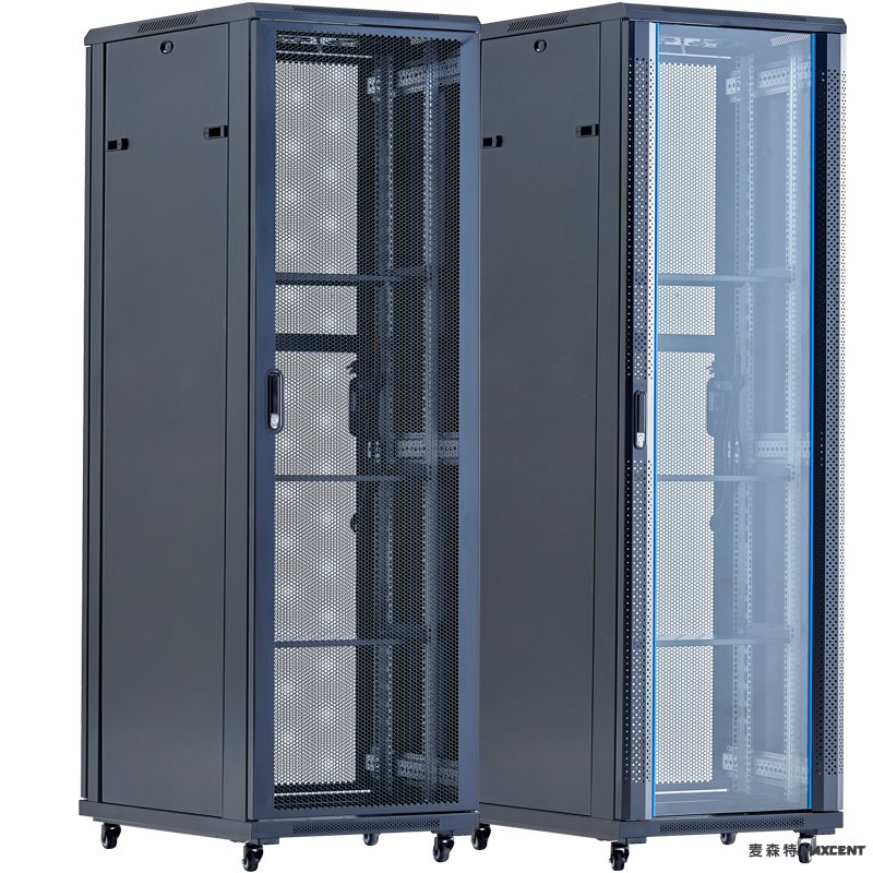麥森特(maxcent)品牌網(wǎng)絡(luò)機柜常見顏色有白色、黑色。 鋼化玻璃門和網(wǎng)格門的區(qū)別。
